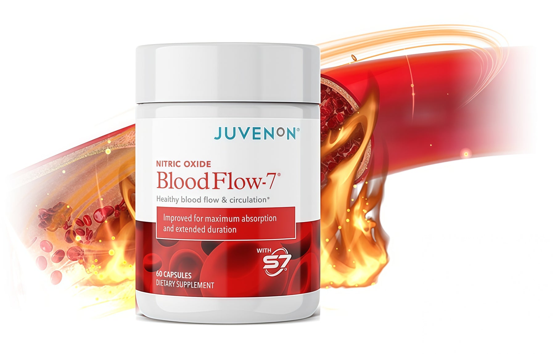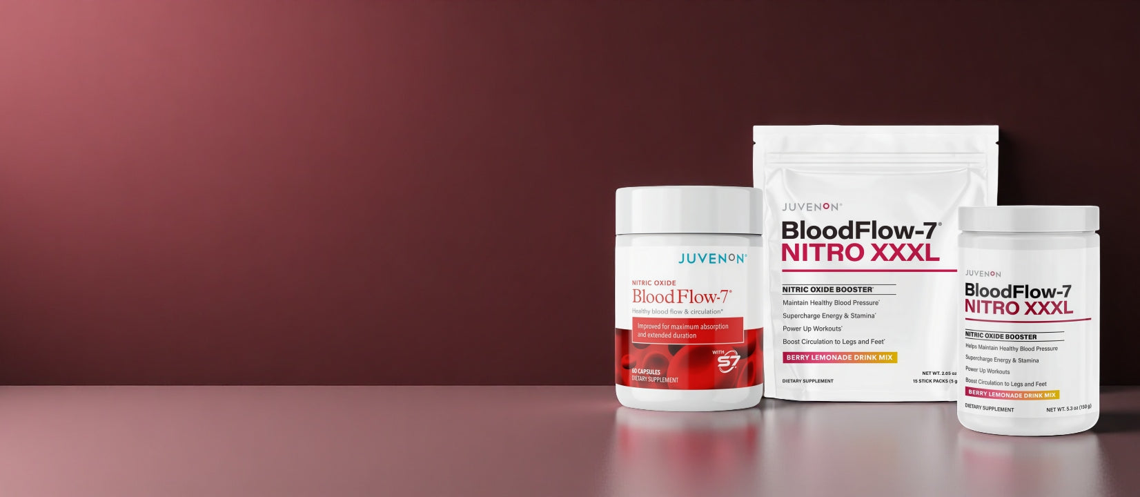 Juvenon's BloodFlow-7 formula contains natural, safe, and clinically researched ingredients that can boost your nitric oxide levels by 230% to improve blood circulation and help maintain healthy blood pressure. Studies have shown that nitric oxide supplements can help maintain healthy pressure. The FDA has not evaluated these statements. This product is not intended to treat, cure, or prevent diseases.